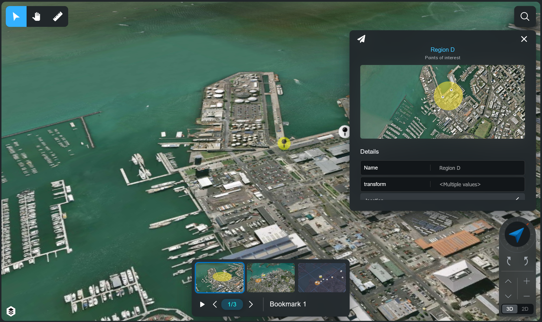 The example will load a list of bookmarks for you to select from, and render some point Entities that you can click.